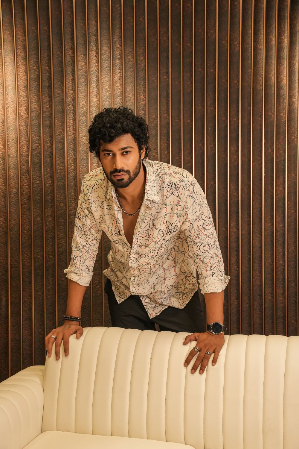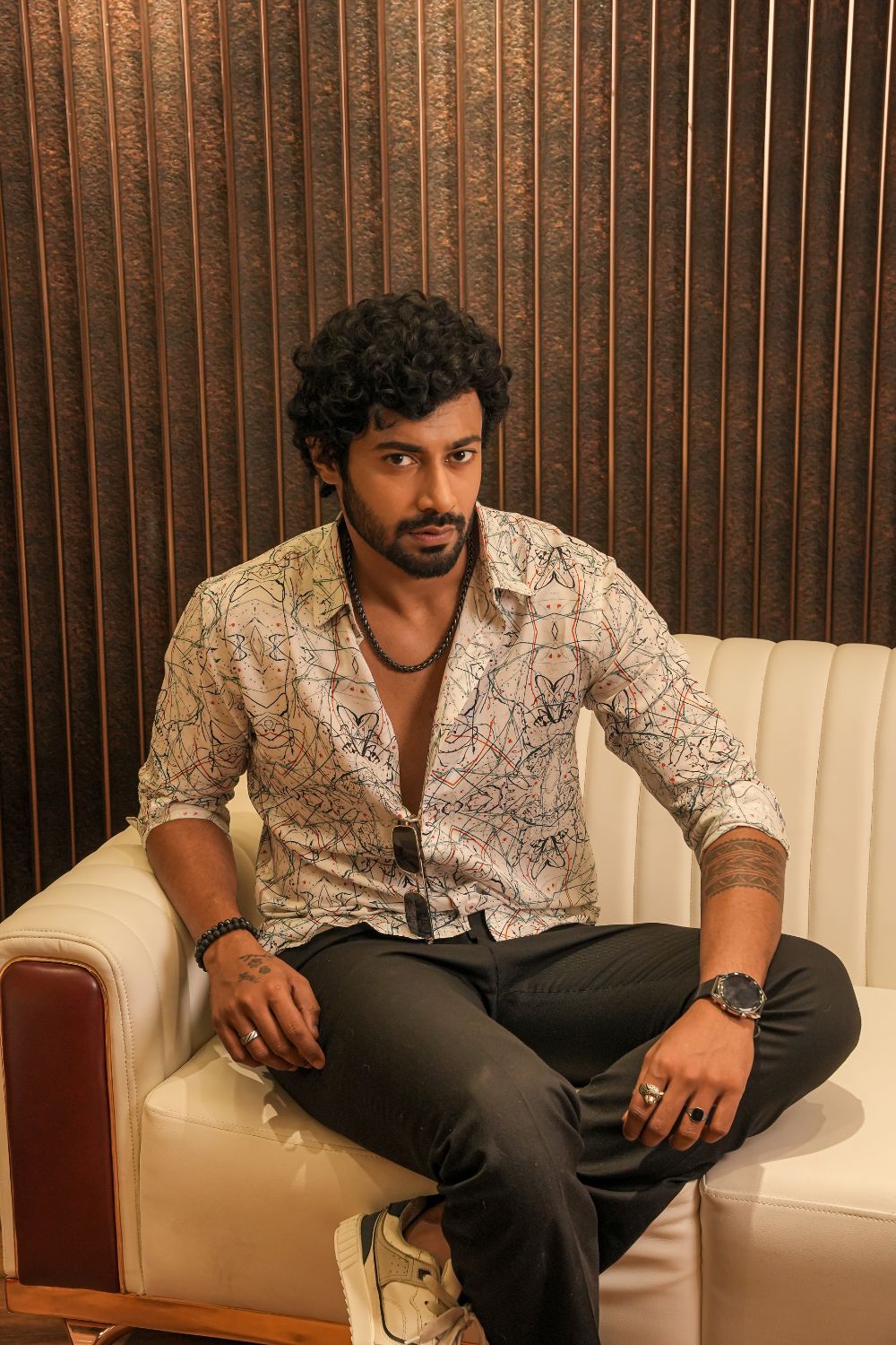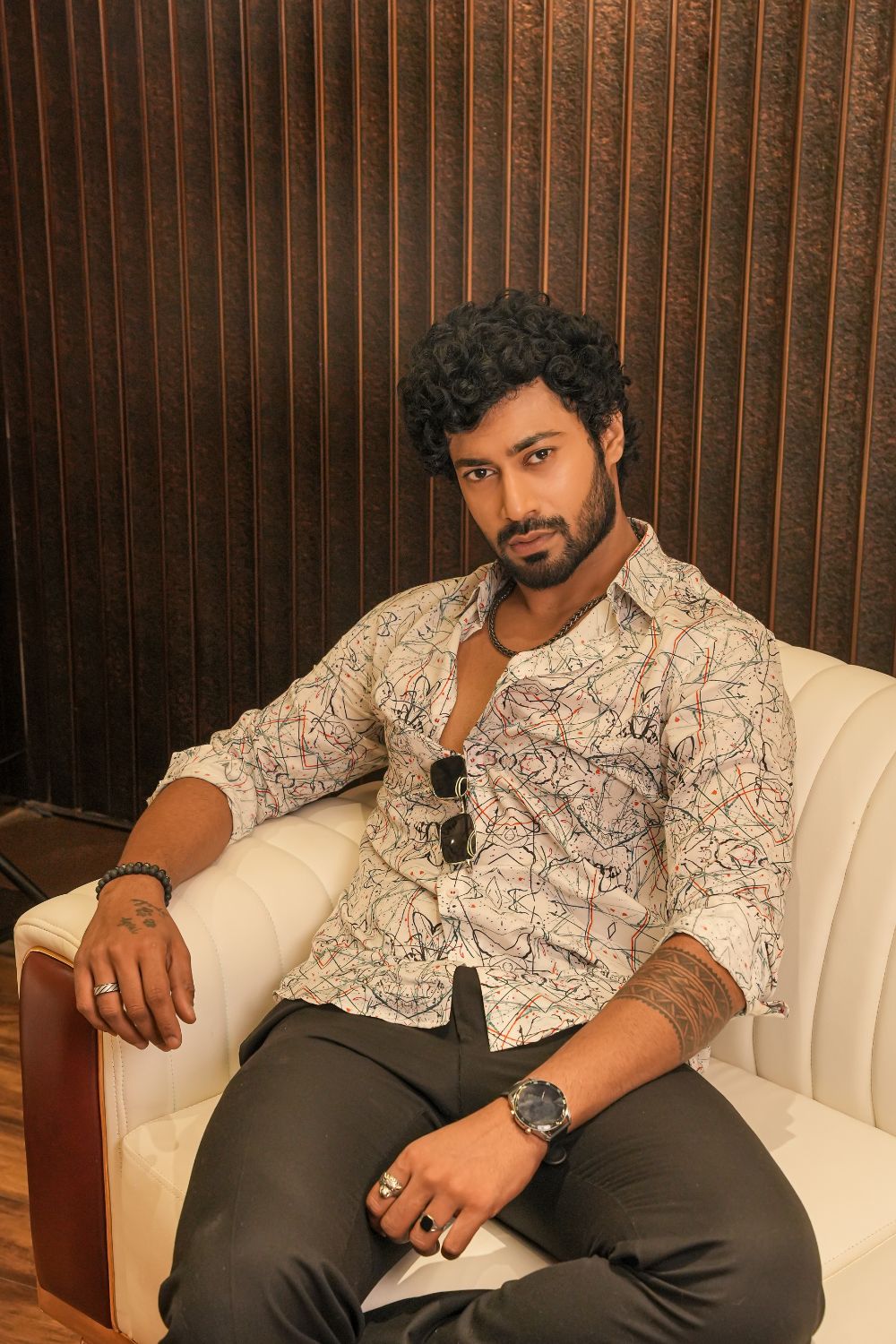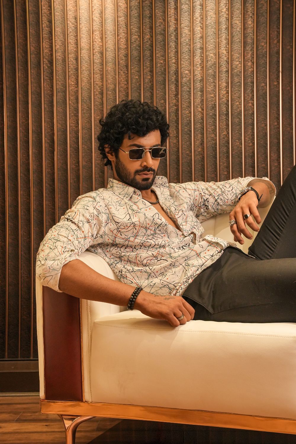 Make a bold impression with the Malibu Sketch Silk Shirt — a short-sleeve button-up shirt crafted from pure silk. Featuring mirrored ink splatters, geometric lines, and digital brushstrokes in black, red, and blue, this shirt channels artistic rebellion with refined elegance. Perfect for gallery nights, creative meetups, or standout streetwear.Lightweight, breathable silk with a smooth drape Designed for resort nights, gallery strolls, and spotlight moments. Pair it with tailored trousers or layer it over swimwear.